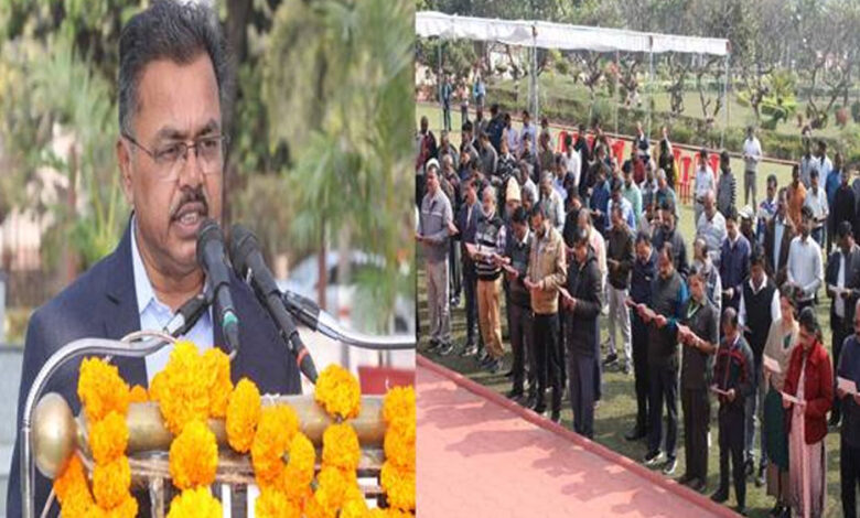 अपर मुख्य सचिव अशोक बर्णवाल ने मंत्रालय स्थित सरदार वल्लभ भाई पटेल पार्क में 15 वें राष्ट्रीय मतदाता दिवस की शपथ दिलायी। शपथ में अधिकारी-कर्मचारियों द्वारा देश की लोकतांत्रिक परम्पराओं की मर्यादा को बनाए रखने तथा स्वतंत्र, निष्पक्ष एवं शांतिपूर्ण निर्वाचन की गरिमा को अक्षुण्ण रखते हुए, निर्भीक होकर, धर्म,वर्ग, जाति, समुदाय, भाषा अथवा अन्य किसी भी प्रलोभन से प्रभावित हुए बिना सभी निर्वाचनों में अपने मताधिकार का प्रयोग करने की शपथ ली गयी। इस अवसर पर सचिव अनिल सुचारी सहित मंत्रालय एवं सतपुड़ा-विंध्याचल भवन के अधिकारी-कर्मचारी उपस्थित थे।