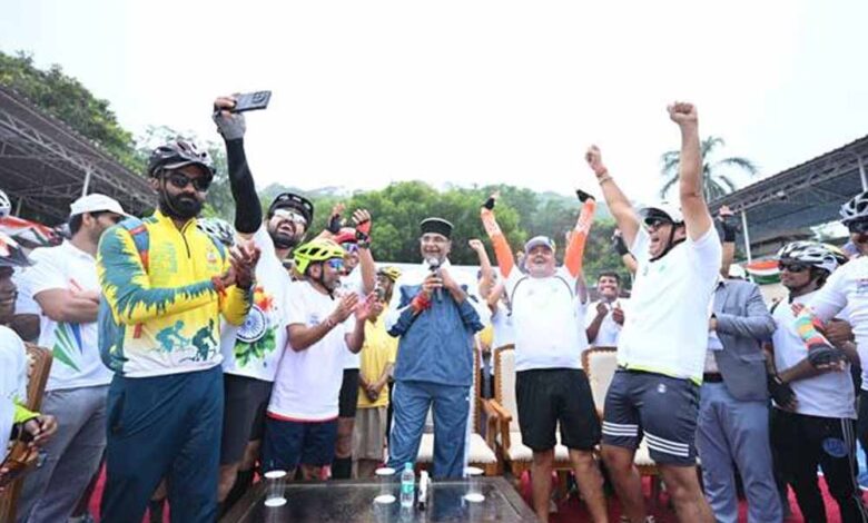 राष्ट्रीय खेल दिवस के अंतर्गत आयोजित तीन दिवसीय खेल महोत्सव का समापन रविवार को राजधानी भोपाल में फिट इंडिया साइकिल रैली और वॉटर स्पोर्ट्स शो के साथ हुआ। साइकिल रैली का नेतृत्व सहकारिता, खेल एवं युवा कल्याण मंत्री श्री विश्वास कैलाश सारंग ने किया। खेल एवं युवा कल्याण विभाग तथा भारतीय खेल प्रधिकरण भोपाल शाखा के संयुक्त तत्वावधान में आयोजित साइकिल रैली का शुभारंभ वीआईपी रोड स्थित राजाभोज प्रतिमा से हुआ, जिसमें हजारों की संख्या में साइकिलिस्टों ने उत्साहपूर्वक भाग लिया। रैली वीआईपी रोड होते हुए लेक व्यू स्थित वॉटर स्पोर्ट्स अकादमी तक पहुँची। पूरे मार्ग में फिटनेस, पर्यावरण संरक्षण और अनुशासन का संदेश जन-जन तक पहुँचाया गया।