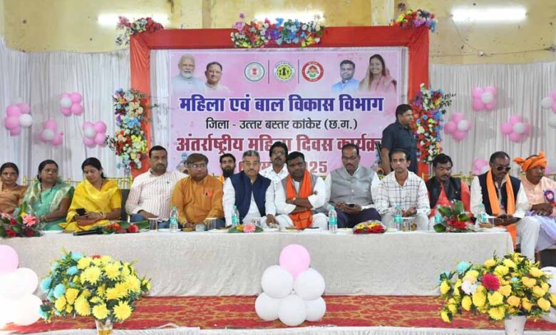 अंतरराष्ट्रीय महिला दिवस के अवसर पर शनिवार 08 मार्च को कांकेर के नया कम्युनिटी हाल में महिला एवं बाल विकास विभाग द्वारा महिलाओं को सम्मान किया गया। कार्यक्रम में कांकेर विधायक श्री आशाराम नेताम, नगर पालिका अध्यक्ष अरुण कौशिक, उपाध्यक्ष उत्तम यादव शामिल हुए। इस अवसर महिला केंद्रित विभिन्न कार्यक्रमों का आयोजन किया गया।