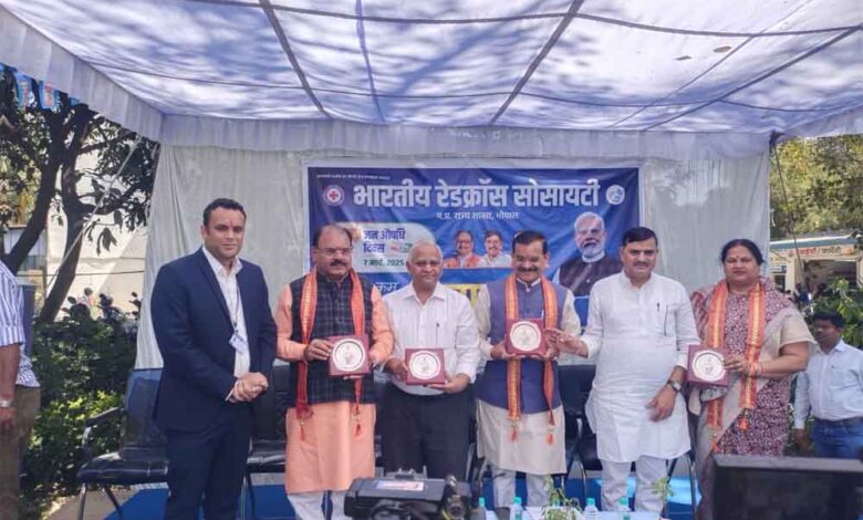 प्रधानमंत्री जन औषधि दिवस के उपलक्ष्य में आज भोपाल के शिवाजी नगर स्थित भारतीय रेडक्रॉस सोसाइटी परिसर में कार्यक्रम का आयोजन किया गया। कार्यक्रम में खजुराहो सांसद श्री विष्णुदत्त शर्मा और विधायक श्री भगवान दास सबनानी शामिल हुए। कार्यक्रम में सांसद श्री शर्मा और विधायक श्री सबनानी ने जन औषधि केंद्रों के माध्यम से मिल रहे फायदों के बारे में चर्चा की। उन्होंने आम जन से भारतीय जन औषधि केन्द्र से मिलने वाली दवाइयों से होने वाले लाभ की भी जानकारी ली। इस दौरान  भारतीय रेडक्रॉस सोसाइटी राज्य कार्यालय में चिकित्सालय के पदाधिकारियों से विभिन्न विषयों पर बातचीत की। कार्यक्रम में मध्य प्रदेश रेडक्रॉस राज्य शाखा के चेयरमैन डॉ. गगन कोल्हे एवं जनरल सेक्रेटरी श्री रामेन्द्र सिंह, प्रधानमंत्री भारतीय जन औषधि परियोजना मध्य प्रदेश के सहायक प्रबंधक अनुज तिवारी, मेडिकल संचालक श्रीमती अनिला गुप्ता भोपाल उपस्थित रहे ।