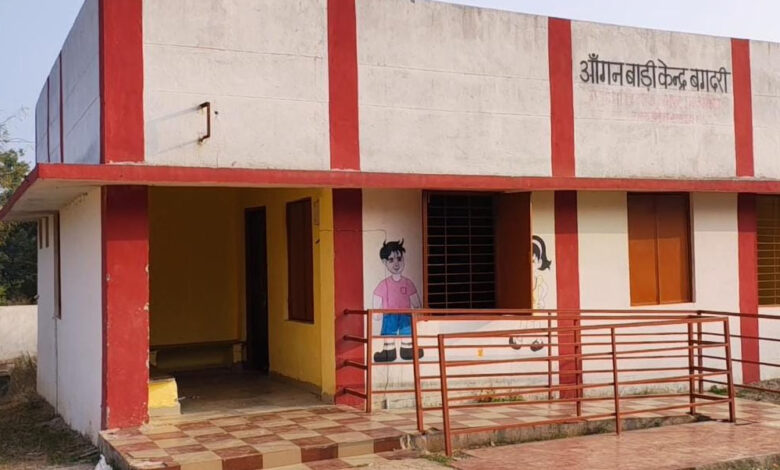 एक साल में ही आंगनबाड़ी भवन की हालत जर्जर, PIU के भवनों में घटिया पन का खेल जारी