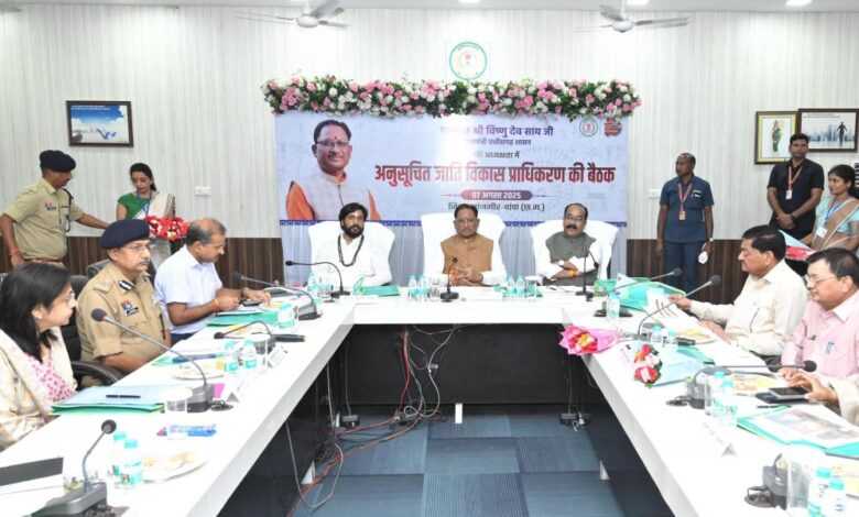 मुख्यमंत्री विष्णु देव साय की अध्यक्षता में आज जांजगीर-चांपा जिले के जिला पंचायत सभाकक्ष में आयोजित अनुसूचित जाति विकास प्राधिकरण की बैठक में प्राधिकरण के बजट को 50 करोड़ से बढ़ाकर 75 करोड़ रुपये करने की स्वीकृति दी गई। मुख्यमंत्री साय ने निर्देश दिए कि प्राधिकरण मद से स्वीकृत कार्यों को सभी कलेक्टर्स गंभीरता से लें और उन्हें उच्च गुणवत्ता के साथ निर्धारित समयसीमा में पूर्ण कराना सुनिश्चित करें। उन्होंने कहा कि अब प्राधिकरण की बैठक हर वर्ष समय पर आयोजित होगी और कार्यों की गहन समीक्षा की जाएगी।