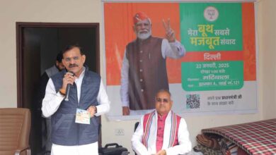विष्णुदत्त शर्मा ने रविवार को दिल्ली में पार्टी कार्यकर्ताओं की बैठक कर घर-घर जनसंपर्क कर भाजपा को वोट देने की अपील