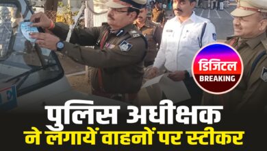SP Yashpal Rajput : शाजापुर पुलिस अधीक्षक ने लगायें वाहनों पर स्टीकर