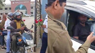 गरियाबंद मुख्यालय में यातायात शाखा ने चलाया जागरूकता अभियान, पुलिस ने हेलमेट पहने चालकों को दिया गुलाब फूल