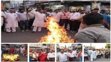 मनेन्द्रगढ़ में कांग्रेस नेताओं का पुतला दहन, ईडी की चार्जशीट के बाद भाजपा युवा मोर्चा का प्रदर्शन