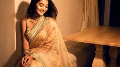 आइवरी गोल्ड-एम्बेलिश्ड साड़ी में बेहद स्टाइलिश दिखीं पूजा हेगड़े
