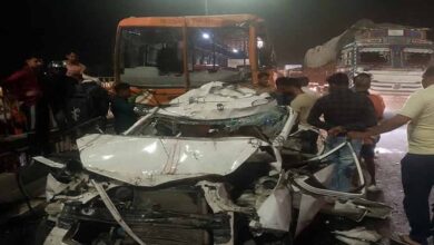 आगरा-मथुरा हाईवे पर भीषण सड़क हादसा, मेटाडोर-रोडवेज के बीच पिस गई कार, दो युवकों की मौत