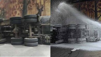 सुपेला के नवनिर्मित रेलवे अंडरब्रिज पर पलटा तेल से भरा ट्रक, चालक घायल
