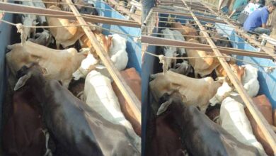 पुलिस ने कत्लखाने ले जा रहे 32 मवेशियों से भरे ट्रक पकड़ा, आरोपी फरार