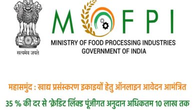 महासमुंद : प्रधानमंत्री सूक्ष्म खाद्य उद्योग उन्नयन योजना : खाद्य प्रसंस्करण इकाइयों हेतु ऑनलाइन आवेदन आमंत्रित