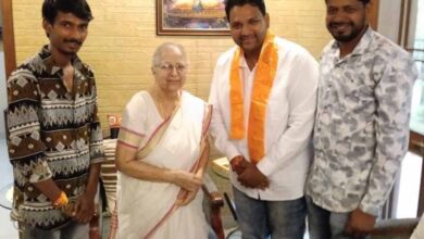 सुमित्रा महाजन द्वारा सागर लखार का स्वागत किया