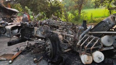 डीसीएम-डंपर की भिड़ंत के बाद भयानक आग, तीन की जिंदा जलकर मौत