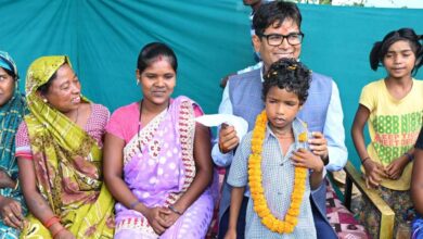 रायपुर : बिरहोर परिवार के गृह प्रवेश में पहुंचे वित्त मंत्री ओ.पी.चौधरी, परिवार के नन्हे बच्चे से कटवाया फीता