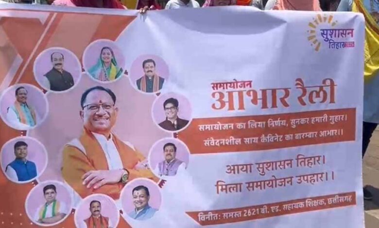 राजधानी रायपुर के इंडोर स्टेडियम से लेकर सुभाष स्टेडियम तक यह रैली निकाली गई. इस आभार रैली में प्रदेश के कोने-कोने से सहायक शिक्षक शामिल होने के लिए पहुंचे. शिक्षकों ने समायोजन के फैसले का स्वागत करते हुए मुख्यमंत्री विष्णुदेव साय और शिक्षा विभाग के प्रति आभार व्यक्त किया, साथ ही समायोजन प्रक्रिया को पारदर्शी और न्यायसंगत बनाने की मांग भी दोहराई.