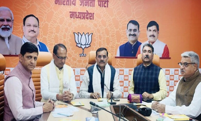 भाजपा प्रदेश अध्यक्ष विष्णुदत्त शर्मा, केंद्रीय मंत्री शिवराज सिंह चौहान एवं प्रदेश संगठन महामंत्री हितानंद की उपस्थिति में भाजपा प्रदेश कार्यालय में गुरुवार को एक देश-एक चुनाव को लेकर पार्टी द्वारा गठित प्रदेश स्तरीय टोली की बैठक आयोजित की गई।
