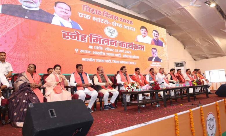 मुख्यमंत्री डॉ. मोहन यादव, भारतीय जनता पार्टी के प्रदेश अध्यक्ष व खजुराहो सांसद विष्णुदत्त शर्मा, बिहार शासन के मंत्री राजू कुमार सिंह एवं प्रदेश संगठन महामंत्री हितानंद जी ने रविवार को भाजपा प्रदेष कार्यालय में बिहार दिवस के उपलक्ष्य में आयोजित ‘‘एक भारत श्रेष्ठ भारत‘‘ अभियान के तहत आयोजित स्नेह मिलन कार्यक्रम का शुभारंभ किया।