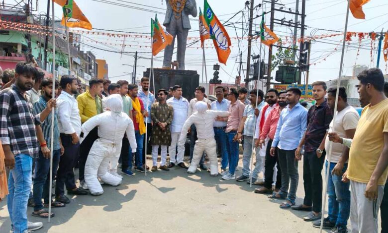 भाजपा युवा मोर्चा ने आज अंबेडकर चौराहा पर सोनिया गांधी और राहुल गांधी का पुतला दहन किया गया