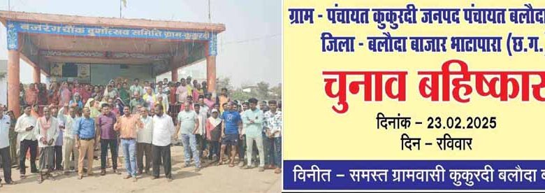 त्रिस्तरीय पंचायत चुनाव के तीसरे चरण में बलौदाबाजार जनपद पंचायत के ग्राम पंचायत कुकुरदी के ग्रामीणों ने चुनाव का बहिष्कार कर दिया है. सांवरा जाति के लोगों को उनके ग्राम पंचायत के वार्ड नंबर 12 में शामिल किए जाने का लगातार विरोध करते हुए चुनाव में मतदान नहीं करने का निर्णय लिया है.