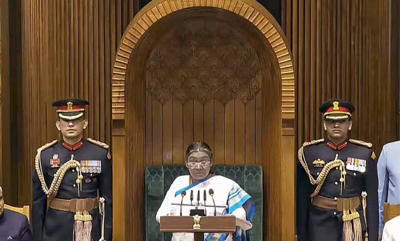 संसद की संयुक्त बैठक को संबोधित करते हुए राष्ट्रपति द्रौपदी मुर्मू ने कहा, 'आजादी के दशकों बाद भी हमारे जिस आदिवासी और जनजातीय समाज की उपेक्षा होती रही मेरी सरकार ने उनके कल्याण को सर्वोच्च प्राथमिकता दी है।'