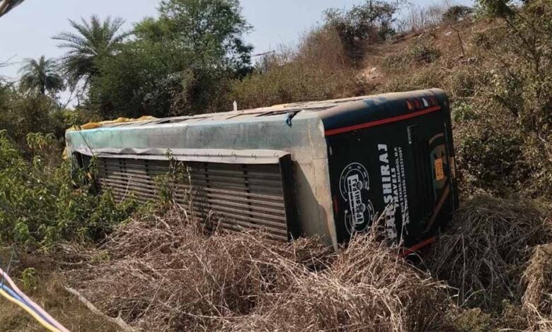 मंडला-सिवनी स्टेट हाईवे में 100 फीट गहरी खाई में पलटी बस, 20 यात्री हुए घायल