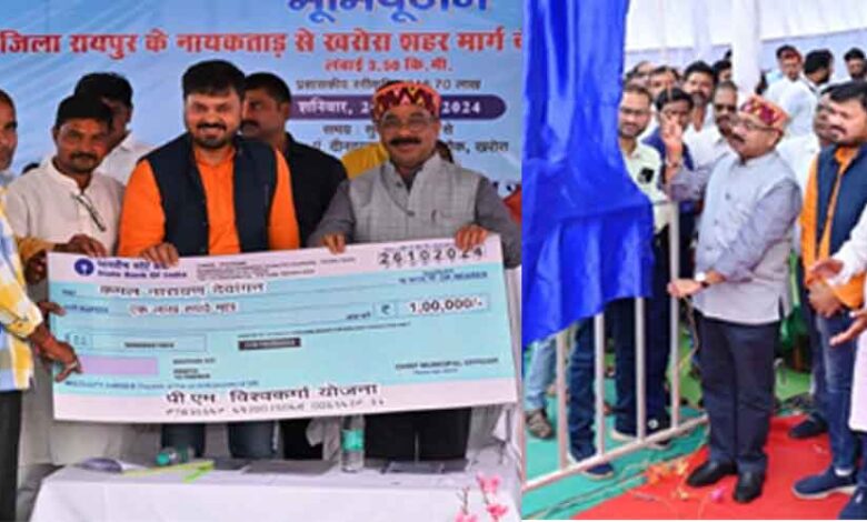 उन्होंने महिला स्वसहायता समूहों और प्रधानमंत्री विश्वकर्मा योजना के हितग्राहियों को कुल सात लाख रुपए के बैंक ऋण का चेक भी प्रदान किया। धरसीवा के विधायक अनुज शर्मा और खरोरा नगर पंचायत के अध्यक्ष अनिल सोनी भी लोकार्पण-भूमिपूजन कार्यक्रम में शामिल हुए। उप मुख्यमंत्री और लोक निर्माण व नगरीय प्रशासन एवं विकास मंत्री अरुण साव ने खरोरा के दीनदयाल उपाध्याय चौक में आयोजित कार्यक्रम में 25 लाख 53 हजार रुपए की लागत से निर्मित पौनी-पसारी हाट-बाजार और पांच लाख रुपए की लागत से बने सामुदायिक भवन का लोकार्पण किया। उन्होंने नायकताड़ से खरोरा शहर तक 19 करोड़ 47 लाख रुपए की लागत से बनने वाले साढ़े तीन किलोमीटर गौरव पथ का भूमिपूजन भी किया।