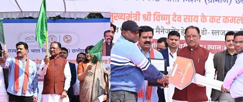 मुख्यमंत्री साय ने 10 डी-स्लज वाहनों को दिखाई हरी झंडी: सरपंच और सचिवों को डी-स्लज वाहनों की सौंपी चाबी