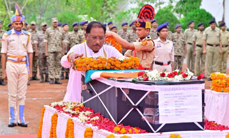 मुख्यमंत्री साय ने नक्सल मुठभेड़ में शहीद जवान मेहुल भाई को दी श्रद्धांजलि