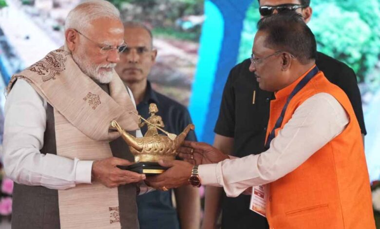मुख्यमंत्री साय ने प्रधानमंत्री मोदी को भेंट किया बिलासा देवी केवट का मोमेंटो