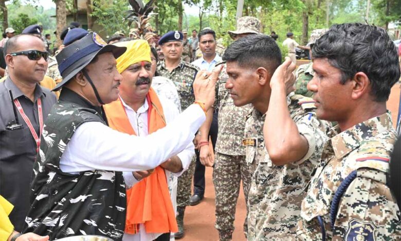 प्रदेश के मुख्यमंत्री विष्णुदेव साय आज ओरछा ब्लॉक के ग्राम बासिंग स्थित बीएसएफ कैम्प पहुंचे, जहां पर उन्होंने 21 मई को हुई डीआरजी-बीएसएफ और जिला बल के द्वारा माओवादियों के विरूद्ध नारायणपुर, दंतेवाड़ा और बीजापुर की सरहदी पहाड़ियों में चलाए गए नक्सल विरोधी ऑपरेशन में 27 नक्सलियों को मार गिराने वाले जवानों की हौसला-अफजाई की। इस दौरान मुख्यमंत्री के साथ उप मुख्यमंत्री एवं गृहमंत्री श्री विजय शर्मा, वन एवं जल संसाधन मंत्री श्री केदार कश्यप विशेष रूप से उपस्थित रहे। मुख्यमंत्री ने बासिंग कैम्प में जवानों को संबोधित करते हुए कहा कि यह माओवाद के विरूद्ध अब तक की सबसे बड़ी कार्रवाई है जिसमें सुरक्षा बलों ने हार्डकोर माओवादी बसवा राजू सहित 27 को मार गिराया।