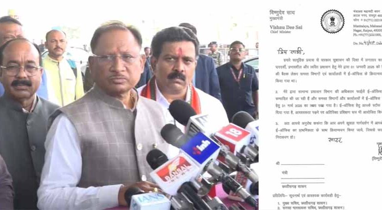 ई-ऑफिस के क्रियान्वयन के लिए मंत्रिमंडलीय सहयोगियों को मुख्यमंत्री साय ने लिखा पत्र
