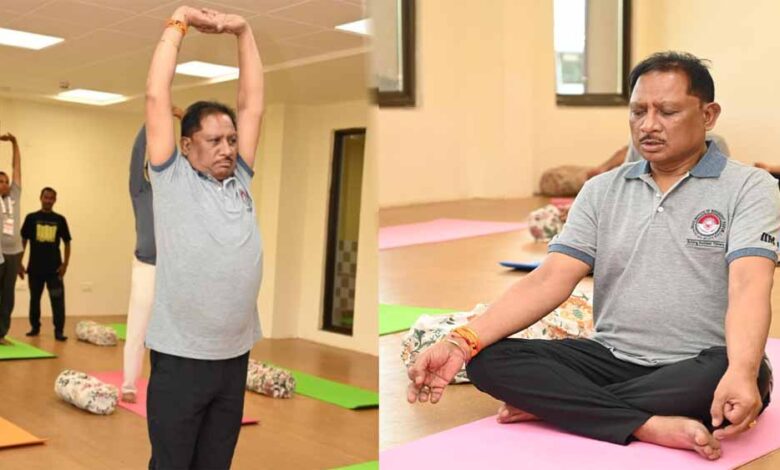 मुख्यमंत्री विष्णु देव साय ने चिंतन शिविर 2.0 के दूसरे दिन योग से की दिन की शुरुआत