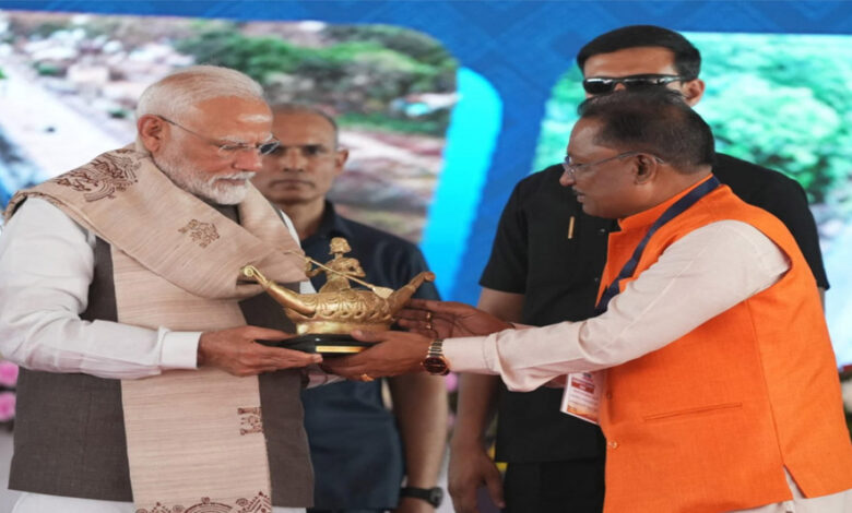 मुख्यमंत्री विष्णुदेव साय ने प्रधानमंत्री नरेंद्र मोदी को भेंट किया बिलासा देवी केवट का मोमेंटो