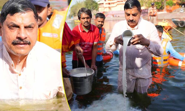 CM यादव ने उज्जैन के रामघाट पर जल गंगा संवर्धन अभियान में हिस्सा लिया, रामघाट पर सफाई की, शिप्रा में डुबकी भी लगा