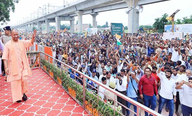 कांवड़ यात्रा में शामिल हुए सीएम योगी, पुष्प वर्षा कर लगाए हर हर महादेव के जयकारे