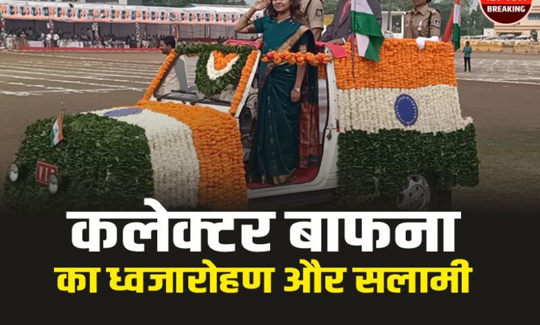कलेक्टर ऋजु बाफना ने ध्वजारोहण कर परेड की ली सलामी , खिलाडियों का हैरत अँगेज प्रदर्शन