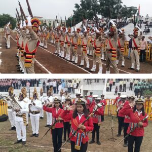 संयुक्त परेड ने मुख्य अतिथि को सलामी दी। इस दौरान सांस्कृतिक कार्यक्रमों में स्कूली बच्चों ने देश भक्ति से ओतप्रोत रंगारंग प्रस्तुतियॉ दी। वही मलखंब खिलाड़ियों द्वारा भी शानदार प्रस्तुतियॉ दी गई जिसमें राष्ट्रीय स्तर के खिलाडियों ने पोल और रोप पर बालक-बालिकाओं ने मलखंभ के विभिन्न आसनो का हैरत अँगेज प्रदर्शन किया।