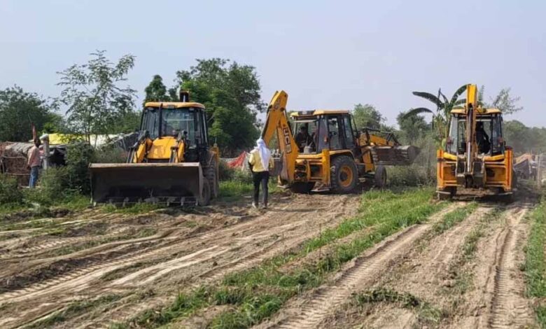 बुलडोजर से झुग्गियों को ध्वस्त किया