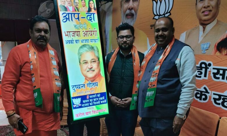 दिल्ली विधानसभा चुनाव में प्रचार चरम पर चल रहा है। आज उत्तराखंड के पूर्व विधायक एवं रविदास आचार्य सुरेश राठौर तथा भारतीय जनता पार्टी के पूर्व राष्ट्रीय उपाध्यक्ष सूरजभान कटारिया ने भी भाजपा प्रत्याशी दुष्यंत कुमार गौतम के लिए करोल बाग क्षेत्र में वोटो का चुनाव प्रचार किया और वोट मांगे।