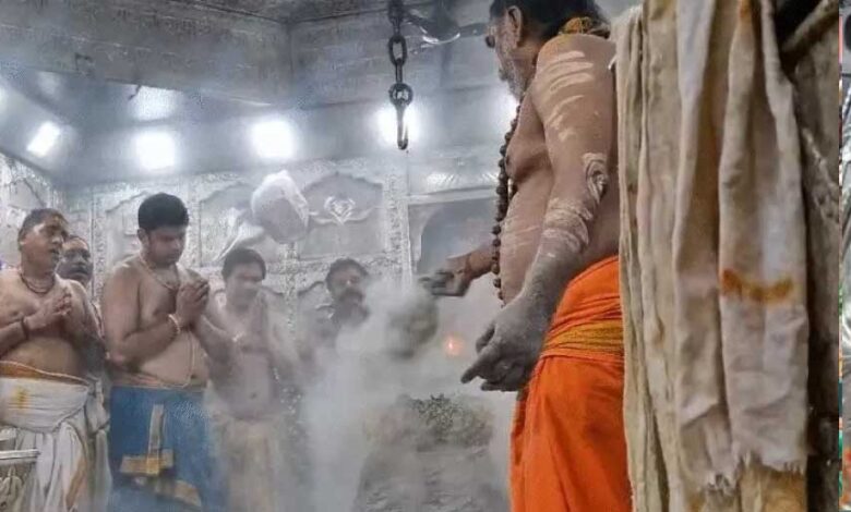 इसके बाद सभा मंडप में वीरभद्र जी के कान में स्वस्ति वाचन किया गया। फिर भगवान से आज्ञा लेकर चांदी का पट खोला गया। जल से भगवान महाकाल का अभिषेक करने के पश्चात दूध, दही, घी, शक्कर, शहद और फलों के रस से बने पंचामृत से पूजन किया गया। भगवान महाकाल का रजत चंद्र, त्रिशूल, मुकुट और आभूषण के साथ भांग, चंदन और ड्रायफ्रूट से श्रृंगार किया गया। इसके बाद भस्म चढ़ाई गई। महाकाल ने शेषनाग का मुकुट, रजत मुंडमाल और रुद्राक्ष की माला के साथ-साथ सुगंधित पुष्प से बनी फूलों की माला धारण की। इसके बाद फल और मिष्ठान का भोग लगाया।