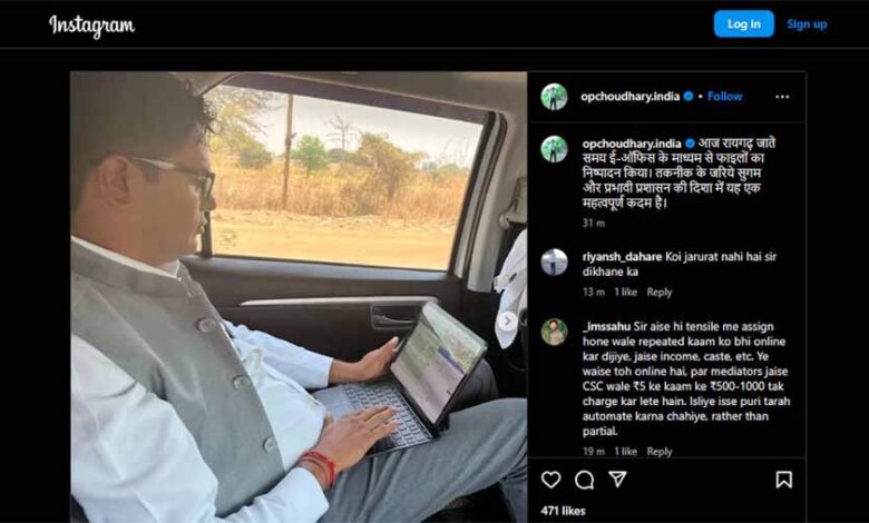 वित्त मंत्री ओपी चौधरी ने ई-ऑफिस के जरिए फाइलों के निष्पादन की सोशल मीडिया पर तस्वीर की शेयर