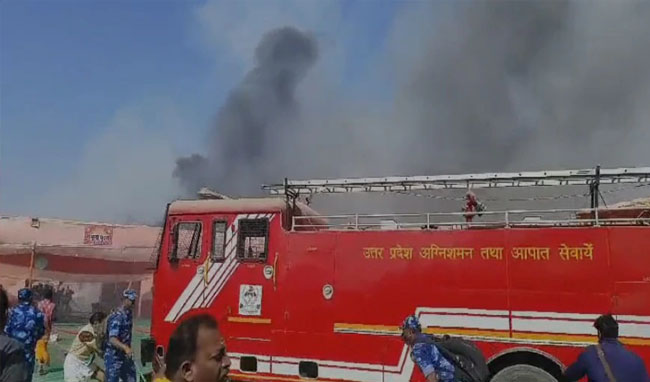 महाकुंभ मेला क्षेत्र में फिर लगी आग, संगम के सेक्टर 18 शंकराचार्य रोड का पंडाल चपेट में