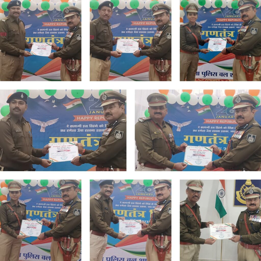 इस अवसर पर उन्हाैने उपस्थित समस्त पुलिस अधिकारी कर्मचारियों को गणतंत्र दिवस की बधाई दी और बेहतर कार्य करने वाले अधिकारी व कर्मचारियों को प्रशस्ती पत्र देकर सम्मानित किया।