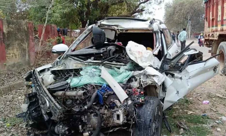 ट्रक से भिड़ी कार, परखच्चे उड़े