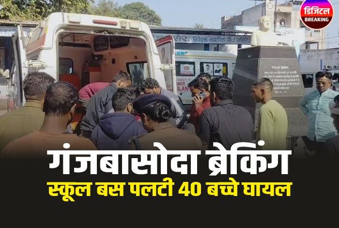 गंजबासोदा ब्रेकिंग : स्कूल बस पलटी 40 बच्चे घायल, 5 गंभीर