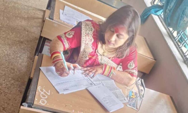 अगर मन में पढ़ने की लगन हो, तो… सौंसर में सात फेरे लेने के बाद पति संग परीक्षा केंद्र पहुंची दुल्हन