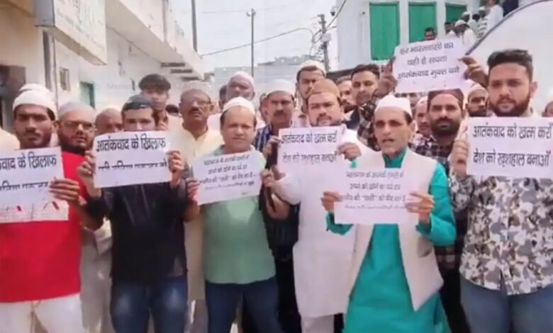 यूपी के संभल और चंदौसी जिले की कई मस्जिदों में शुक्रवार को जुमे की नमाज अदा करने नमाजी काली पट्टी बांधकर पहुंचे और पाकिस्तान के खिलाफ नारेबाजी की। संभल की शाही जामा मस्जिद में नमाजियों ने पोस्टर लेकर पाकिस्तान और आतंकवादियों के खिलाफ प्रदर्शन किया। कश्मीर के पहलगाम शहर के बैसरन में मंगलवार को हुए आतंकी हमले में 26 लोगों की मौत हो गयी थी, जिसमें से अधिकतर पर्यटक थे। संभल की शाही जामा मस्जिद में नमाज पढ़ कर निकले साकिर हुसैन ने कहा, जिन निहत्थे लोगों के साथ यह जुल्म हुआ और हमारी बहनों का सुहाग उजाड़ दिया गया, बेहद ही दुखद घटना है। उन्होंने अपना गुस्सा जाहिर करते हुए कहा, “आतंकवादियों और उनके आकाओं को सबक सिखाने का यह सही समय है। मेरी सरकार से गुजारिश है कि इन आतंकवादियों को ऐसा सबक मिले कि नस्ले भी याद रखें।
