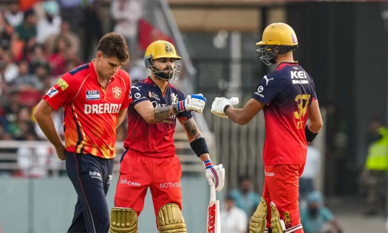 नेहाल वडेरा के 19वें ओवर की पांचवी गेंद पर जितेश शर्मा ने शानदार छक्का लगाकर आरसीबी को सीजन की पांचवी जीत दिलाई। इस जीत के साथ आरसीबी की वापस टॉप-4 में एंट्री हो गई है। वह अब तीसरे पायदान पर है। कोहली ने 73 रनों की नाबाद पारी खेली।