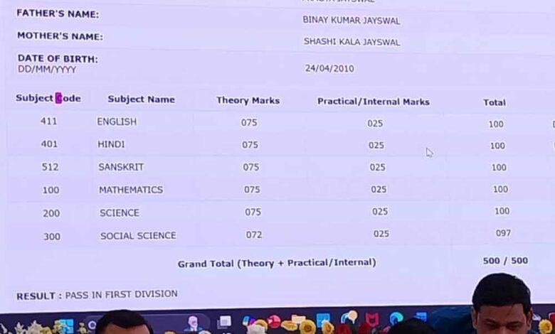 माध्यमिक शिक्षा मंडल की 10वीं व 12वीं बोर्ड परीक्षा का परिणाम जारी, प्रज्ञा जायसवाल को 500/500, किया टॉप