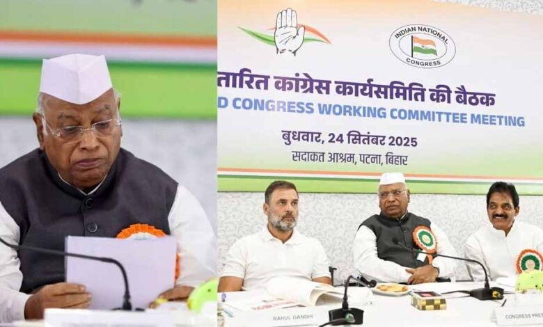 कांग्रेस अध्यक्ष मल्लिकार्जुन खरगे ने अमेरिकी राष्ट्रपति डोनाल्ड ट्रंप की हालिया टिप्पणियों को लेकर बुधवार को प्रधानमंत्री नरेन्द्र मोदी पर कटाक्ष करते हुए कहा कि प्रधानमंत्री जिनको “मेरे दोस्त” बताकर ढिंढोरा पीटते हैं, वही दोस्त आज भारत को अनेक संकट में डाल रहे हैं। उन्होंने कहा, "पटना में हो रही कार्य समिति की यह बैठक बेहद महत्वपूर्ण है। हम ऐसे समय में मिल रहे हैं, जबकि अन्तराष्ट्रीय और राष्ट्रीय, दोनों स्तरों पर भारत एक बेहद चुनौतीपूर्ण और चिंताजनक दौर से गुज़र रहा है।"